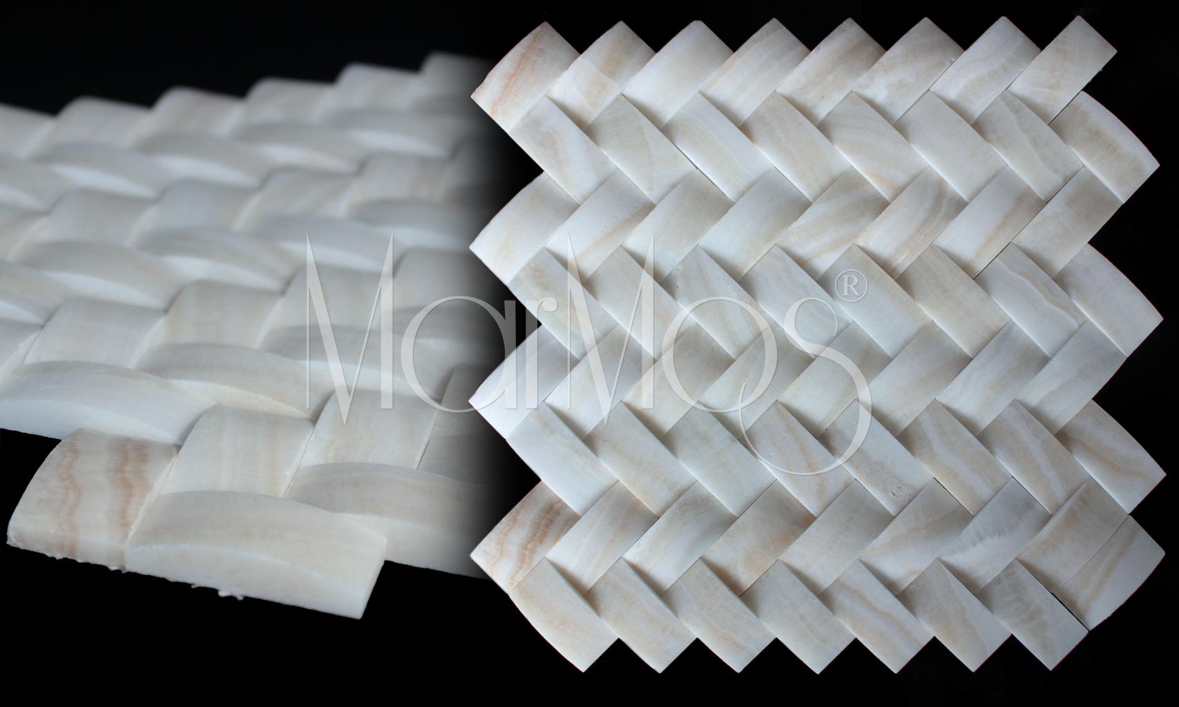 2.5cmx5cm - 1'x2' Concave Herringbone White Hill Onyx