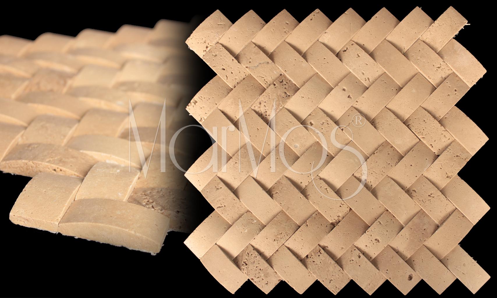 2.5cmx5cm - 1'x2' Concave Herringbone Noche Travertine